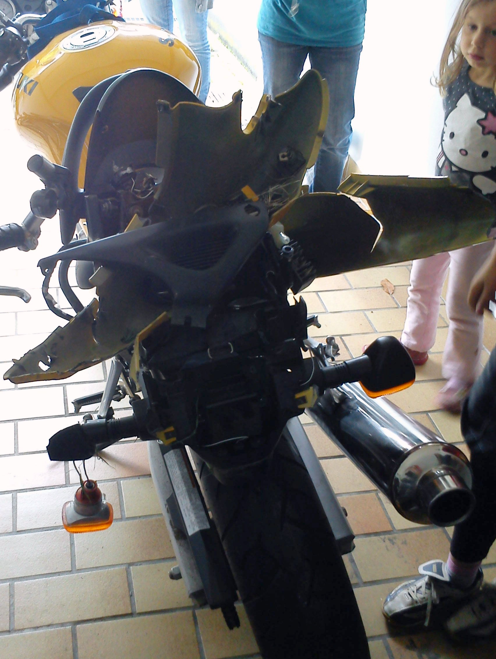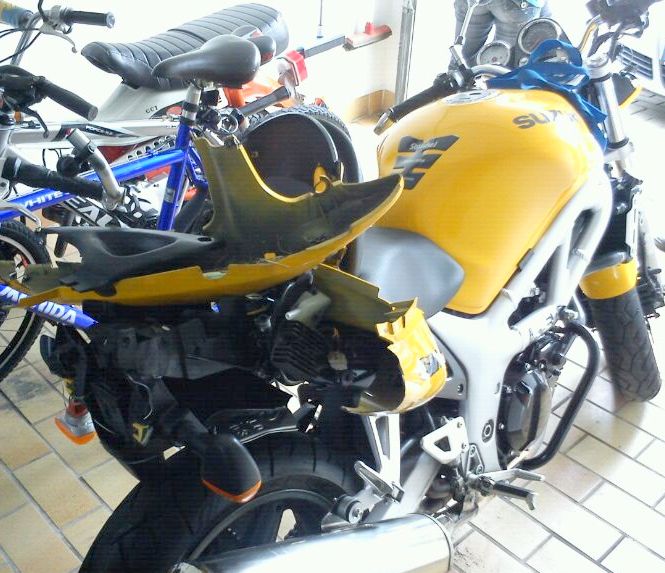 Nach ein paar Tagen Pflege von meinem Freund, habe ich mich getraut mein Motorrad anzuschauen, ich wurde schon darauf vorbereitet wie schlimm es aussieht, aber seht selbst.